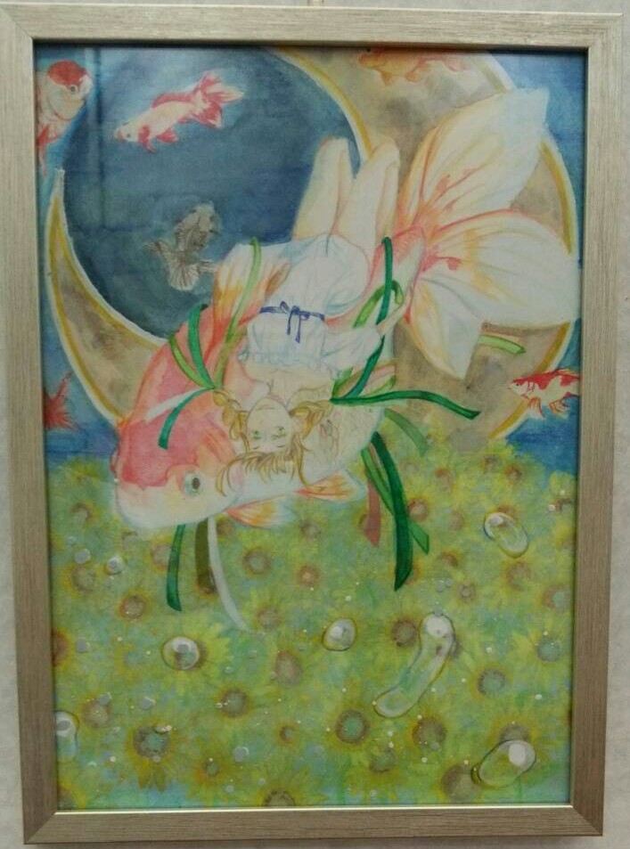 花澤理奈 『夏の月』 B4 透明水彩、色鉛筆