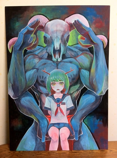一応、自分の心(=モンスター)にケリをつけているところを描いたつもりです!