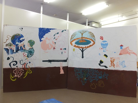 こんな絵たちができあがり、来場者だけでなく既存の部員たちもちょこちょこ絵をかいて華やかなキャンパスとなりました。