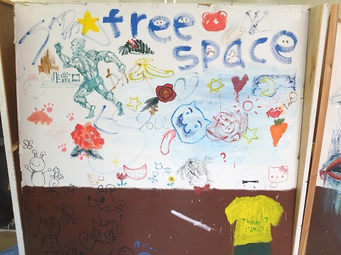 今年は、来場者が白い壁に絵を描いてもらう来場者参加型展示会にし、来場者に楽しんで、そして興味を持ってもらうようにしてみました。